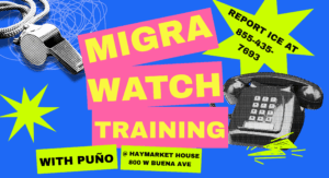 Join PUÑO for a training on how to document and report ICE activity in your neighborhood. Since January, PUÑO has been building collective power to protect Chicago’s immigrant communities through a variety of trainings and connecting Chicagoans to their local rapid response group. At this training organizers will lead attendees in a 2-hour training on […]