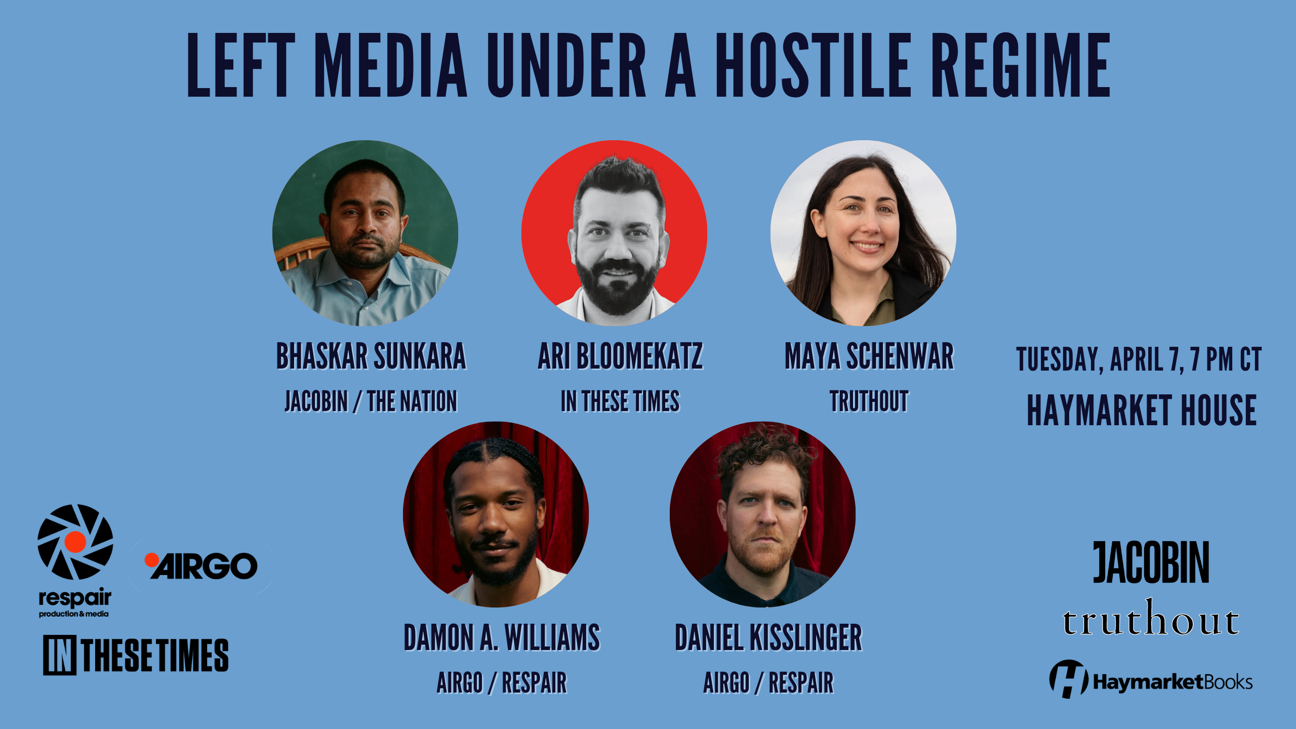 This event is sponsored by Haymarket Books, Jacobin, In These Times, Truthout, AirGo Radio and Respair Media. While all of our events are freely available, we ask that those who are able make a solidarity donation in support of our important publishing and programming work.